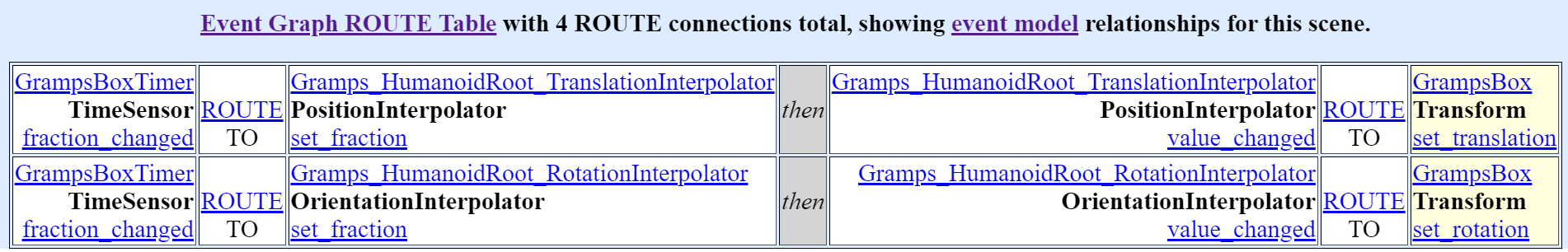 * https://www.web3d.org/x3d/content/examples/HumanoidAnimation/WinterAndSpring/GrampsBoxTimerOnlyEventGraphRouteTable.png (attached)