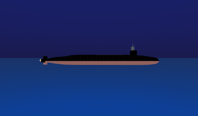 | 64 | <!-- FAS does not report a "draft" for an SSGN, only a displacement in tone. So, I took a swag at it being about 3/4 submerged when on the surface (tdn) --> |