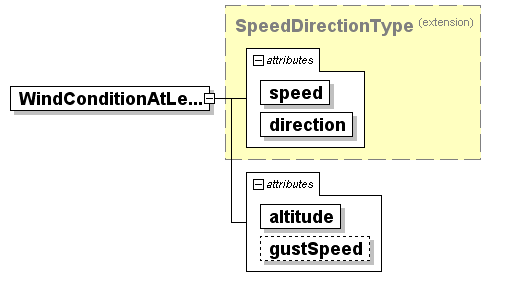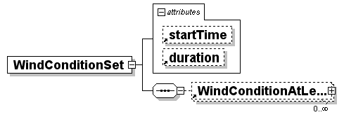 | source | <xs:element name="WindConditionSet"> <xs:complexType> <xs:annotation> <xs:appinfo>Collects all wind condition elements for a single EnvironmentalCondition element.</xs:appinfo> </xs:annotation> <xs:complexContent> <xs:extension base="FullyExtensibleSMALElementType"> <xs:sequence> <xs:element ref="WindConditionAtLevel" minOccurs="0" maxOccurs="unbounded"/> </xs:sequence> <xs:attribute ref="startTime"/> <xs:attribute ref="duration"/> </xs:extension> </xs:complexContent> </xs:complexType> </xs:element> |