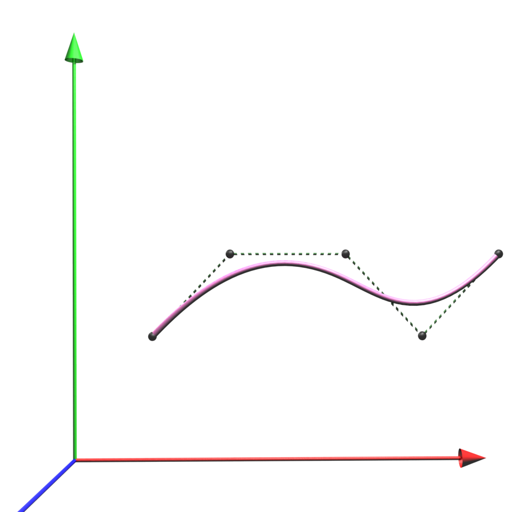 Sending a set_fraction input computes a 3D position on the curve, which is sent by value_changed. The set_fraction value is used as the input value for the tessellation function. Thereby, the knot corresponds to the key field of a conventional interpolator node; i.e., if the set_fraction value is within [0,1] and the knot vector within [0,2], only half of the curve is computed.
