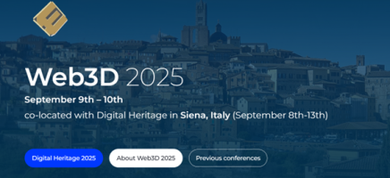 The Web3D Consortium invites you to share your best work at the Web3D 2025 Conference, taking place from September 9-10, 2025 in the beautiful city of Siena, Italy. This year's conference will be co-located with Digital Heritage 2025 (8-13 September), creating a premier international forum that unites 3D Web Technology with multiple heritage domains and conferences.