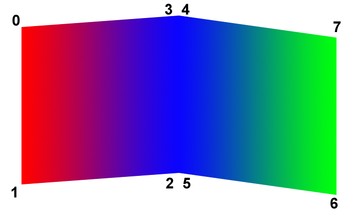 Figure 32.1 depicts a QuadSet node with two quads. The ordering of the vertices is also shown.
