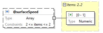 | source code | "@surfaceSpeed": { "type": "array", "minItems": 2, "maxItems": 2, "items": { "type": "number", "default": 0 } } |