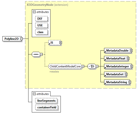 | source | <xs:element name="Polyline2D"> <xs:annotation> <xs:appinfo> <xs:attribute name="componentName" type="componentNameChoices" fixed="Geometry2D"/> <xs:attribute name="componentLevel" type="xs:positiveInteger" fixed="1"/> </xs:appinfo> <xs:documentation source="https://www.web3d.org/documents/specifications/19775-1/V3.3/Part01/components/geometry2D.html#Polyline2D"/> </xs:annotation> <xs:complexType> <xs:complexContent> <xs:extension base="X3DGeometryNode"> <xs:attribute name="lineSegments" type="MFVec2f"/> <xs:attribute name="containerField" type="xs:NMTOKEN" default="geometry"/> </xs:extension> </xs:complexContent> </xs:complexType> </xs:element> |