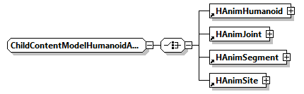 | source | <xs:group name="ChildContentModelHumanoidAnimation"> <xs:annotation> <xs:appinfo>Child-node content model corresponding to X3DChildNode for HumanoidAnimation component.</xs:appinfo> <xs:documentation source="https://www.web3d.org/documents/specifications/19775-1/V3.3/Part01/components/hanim.html"/> </xs:annotation> <xs:choice> <xs:element ref="HAnimHumanoid"/> <xs:element ref="HAnimJoint"/> <xs:element ref="HAnimSegment"/> <xs:element ref="HAnimSite"/> <!-- HAnimMotion added in X3D version 4.0 --> <!-- HAnimDisplacer is X3DGeometricPropertyNode not X3DChildNode --> </xs:choice> </xs:group> |