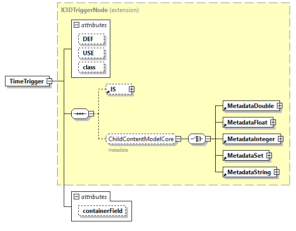 | source | <xs:element name="TimeTrigger"> <xs:annotation> <xs:appinfo> <xs:attribute name="set_boolean" type="SFBool" fixed="inputOnlyField"/> <xs:attribute name="triggerTime" type="SFTime" fixed="outputOnlyField"/> <xs:attribute name="componentName" type="componentNameChoices" fixed="EventUtilities"/> <xs:attribute name="componentLevel" type="xs:positiveInteger" fixed="1"/> </xs:appinfo> <xs:documentation source="https://www.web3d.org/documents/specifications/19775-1/V3.3/Part01/components/utils.html#TimeTrigger"/> </xs:annotation> <xs:complexType> <xs:complexContent> <xs:extension base="X3DTriggerNode"> <xs:attribute name="containerField" type="xs:NMTOKEN" default="children"/> </xs:extension> </xs:complexContent> </xs:complexType> </xs:element> |