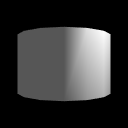 A cylinder center at the origin in the local coordinate system, and measures from -1 to +1 in all three dimensions. |