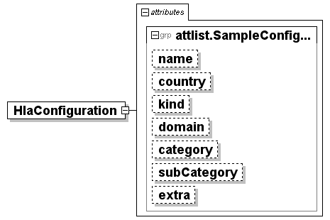 | source | <xs:attributeGroup name="attlist.SampleConfigurationParameters"> <xs:attribute name="name" type="xs:NMTOKEN"/> <xs:attribute name="country" type="xs:NMTOKEN"/> <xs:attribute name="kind" type="xs:NMTOKEN"/> <xs:attribute name="domain" type="xs:NMTOKEN"/> <xs:attribute name="category" type="xs:NMTOKEN"/> <xs:attribute name="subCategory" type="xs:NMTOKEN"/> <xs:attribute name="extra" type="xs:NMTOKEN"/> </xs:attributeGroup> |