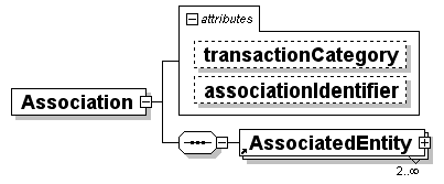 | source | <xs:element name="Association"> <xs:annotation> <xs:appinfo>Allows entities to be associated with each other by command relationship and/or as an embarking entity (onboard or attached to an entity).</xs:appinfo> </xs:annotation> <xs:complexType> <xs:complexContent> <xs:extension base="FullyExtensibleSMALElementType"> <xs:sequence> <xs:element ref="AssociatedEntity" minOccurs="2" maxOccurs="unbounded"/> </xs:sequence> <xs:attribute name="transactionCategory" type="transactionCategoryEnumeration"/> <xs:attribute name="associationIdentifier" type="xs:ID"/> </xs:extension> </xs:complexContent> </xs:complexType> </xs:element> |