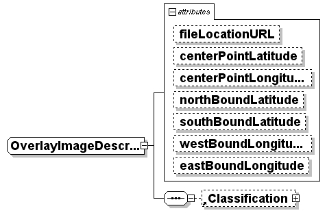 | source | <xs:complexType name="OverlayImageDescriptorType"> <xs:annotation> <xs:appinfo>Super-type used to describe an image overlay for a TerrainTile. The image is referenced by a URI, and its geographic location and extent is described using centerpoint and bounding latitudes/longitudes.</xs:appinfo> </xs:annotation> <xs:complexContent> <xs:extension base="FullyExtensibleSMALElementType"> <xs:sequence> <xs:element ref="Classification" minOccurs="0"/> </xs:sequence> <xs:attribute name="fileLocationURL" type="xs:anyURI" default="http://www.web3d.org/x3d/content/examples/"/> <xs:attribute name="centerPointLatitude" type="latitudeOrdinatePattern" use="optional" default="N00 00.0"/> <xs:attribute name="centerPointLongitude" type="longitudeOrdinatePattern" use="optional" default="W00 00.0"/> <xs:attribute name="northBoundLatitude" type="latitudeOrdinatePattern" use="optional" default="N00 00.0"/> <xs:attribute name="southBoundLatitude" type="latitudeOrdinatePattern" use="optional" default="N00 00.0"/> <xs:attribute name="westBoundLongitude" type="longitudeOrdinatePattern" use="optional" default="W00 00.0"/> <xs:attribute name="eastBoundLongitude" type="longitudeOrdinatePattern" use="optional" default="W00 00.0"/> </xs:extension> </xs:complexContent> </xs:complexType> |