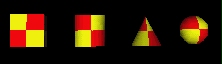 RedYellowCheckerboard is a DEF node that has 3 USE nodes: USE_1, USE_2, USE_3 --> <PixelTexture DEF='RedYellowCheckerboard' image='2 2 3 0xFF0000 0xFFFF00 0xFFFF00 0xFF0000'/> |