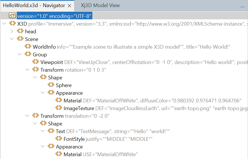 For additional help information about X3D scenes, please see X3D Tooltips, X3D Resources, and X3D Scene Authoring Hints.