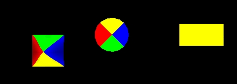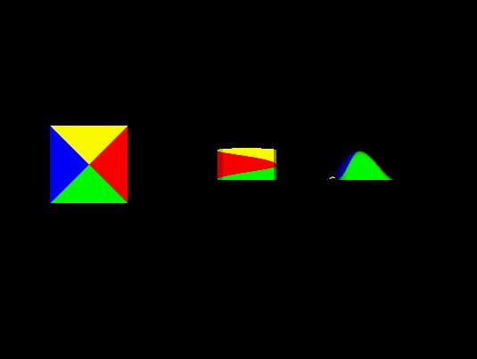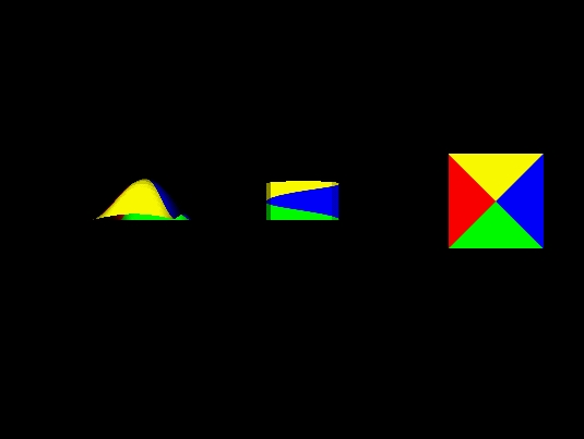 | 23 | <meta name='description' content='Test rotation, center and scale transform to PixelTexture. Test browser ability to apply a +45 degree rotation, with a center of 1 1, a scale of .5 .5 (creating a double sized image), and a translation of .5 .5 to a PixelTexture consisting of a square checkerboard of blue (lower left quadrant), yellow (lower right), red (upper right) and green (upper left) mapped to the faces of complex geometry. The result is: Using the default complex geometry mapping rules (for the bottom face of the ElevationGrid, the side and bottom end cap of the Extrusion, and the front of the IndexedFaceSet) : these geometry faces should display four adjacent right triangles, all with 90 degree central angles and joined at the central vertex. The top triangle should be RED, the bottom BLUE, the left YELLOW and the right GREEN. Opposite geometry faces should show reversed mapping, and side faces for the IndexedFaceSet should show smeared end pixels of the front and back faces.'/> |
