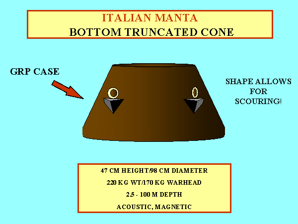 | 6 | <meta name='description' content='Italian Manta bottom mine, with truncated cone and handling padeyes.'/> |