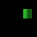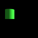Figure 05.04b Cylinder Translation With Axes | Translating -2 units along the X axis, 1 unit along Y axis, and building a cylinder, with coordinate axes superimposed to show X3D/VRML directions |