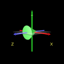 A cube that spins when the viewer touches it, with coordinate axes superimposed to show X3D/VRML directions. Also see Figure 9.1 for comparison. |