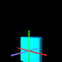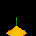 Figure 15.13 Extruded Pyramid With Axes A pyramid built by scaling a square cross section to 0.01 at the pyramid apex.
