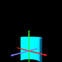 Figure 15.08 Extruded Half Cylinder With Caps With Axes An extruded half cylinder built using half of a circular cross section swept along a straight spine. Also see Figure 15.9 for comparison.