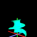Figure 15.15 Twisted Bar With Axes A bar twisted using Y-axis, cross-section rotation at each spine coordinate.