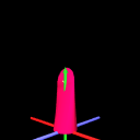 Figure 15.16 Extruded Lipstick With Axes A lipstick shape created by rotating a circular cross section about the X axis as it is extruded.