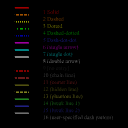 This example shows a colorful PixelTexture applied to the standard primitive shapes. |