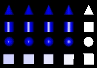| 19 | <meta name='description' content='Five shininess values of 0, .25 .50 .75 and 1.0 are applied from left to right for primitive geometry. The geometry consists of a row of 5 Cones, followed by a row of 5 Cylinders, 5 Spheres, then 5 Boxes. The result is a range of reflection that begins with minimum shininess on the left, to maximum shininess on the right for all four primitive types.'/> |