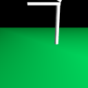 The lower arm of a desk lamp, rotated using a center of rotation at the lower end of the arm. See Figures 6.12 and 9.9 for comparison. |