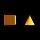 Two shapes that rotate when the viewer drags them, with coordinate axes superimposed to show X3D/VRML directions. |